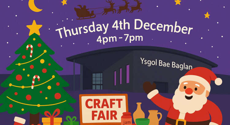 Only one week to go until our Christmas Craft Fayre at Ysgol Bae Baglan. Save the date and join us for a magical festive evening on Thursday 4th December from 4pm until 7pm. You can look forward to a wonderful variety of local arts and crafts, homemade cakes and treats, plus plenty of unique goodies that are perfect for a spot of seasonal shopping. Coffi Brawd will be serving hot drinks and Goggis Cuisine will be on site with delicious curries and sundries to keep everyone warm and happy while browsing.