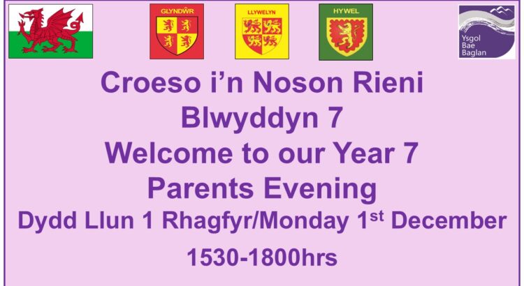 Noson Rieni Blwyddyn 7/Year 7 Parents Evening